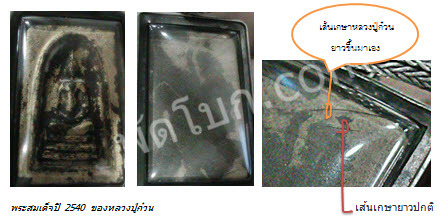 หลายท่านคงจะสงสัยใน “พระองค์ละร้อย ”ที่หลวงปู่ก๋วนท่านกล่าวถึงคือพระสมเด็จปี 2540 หลวงปู่ท่านสร้างเอาไว้จำหน่ายเพื่อเอาไว้ปรับปรุงเสนาสนะของวัดอย่างเงียบๆไม่ได้ไปบอกกล่าวที่ไหนเพราะท่านเองก็ไม่อยากไปรบกวนญาติโยม ใครมาเห็นมาทำบุญก็บูชาไปเป็นศิริมงคลในชีวิตและก็มีบ้างที่มอบให้กับพระวัดอื่นๆที่ขอให้หลวงปู่สร้างพระเนื้อผงให้ (..... จากคำบอกเล่าของพระอาจารย์น้ำเพชร..เท่าที่จำได้มีอยู่วัดหนึ่งที่เคยให้หลวงปู่ช่วยสร้างให้คือ วัดเขาบ่อทอง..(ใครมีพระสมเด็จวัดเขาบ่อทองปี2540 ลองเทียบเคียงหาข้อมูลดูนะครับว่าจะใช่พระที่หลวงปู่ก๋วนท่านทำให้กับวัดเขาบ่อทองหรือเปล่า จะมีกี่พิมพ์พระสมเด็จ รายละเอียดองค์พระมีลักษณะอย่างไร อันนี้ผมต้องขอโทษท่านผู้อ่านด้วยครับ ไม่ทราบจริงๆ เพราะเป็นคำบอกเล่าจากท่านอาจารย์น้ำเพชร))......และเพื่อเอาไว้สร้างโบสถ์ในอนาคต พระรุ่นนี้ปีนี้เป็นพระที่หลวงปู่ก๋วนได้กล่าวกับ “ตาปื๊ด” ซึ่งเป็นเพื่อนของผมในชาติปัจจุบันแต่หลวงปู่ก๋วนท่านบอกกับตาปื๊ดว่า ผมกับปื๊ดเป็นพี่น้องกันในอดีตชาติ แล้วท่านได้บอกกับตาปื๊ดอีกว่า “เอาปืนลองเลย ยิงไม่ออก” แสดงว่าตาปื๊ดลองยิงได้คนเดียวคนอื่นลองไม่ได้เดี๋ยวจะติดกรรม ต้องกล่าวแบบนี้เพราะอาจจะมีผู้เหมารวมว่าหลวงปู่อนุญาต แต่จริงๆแล้วหลวงปู่พูดกับใคร ใครคนนั้นลองยิงได้ คนอื่นจะยิงจะลอง ทำไม่ได้นะครับเดี๋ยวจะติดกรรม ท่านอนุญาตตาปื๊ดคนเดียว อันกรรมนี้เป็นเพราะคนเรามีกรรมไม่เท่ากัน หรือหากบางคนสุดโต่งอยากจะลองอันนี้ก็ปัจจัตตังอีกครับ พระรุ่นนี้แต่ก่อนหลวงพ่อมหาบุญมีได้มอบให้กับครอบครัวผมไว้ 3 องค์ เป็นพิมพ์ซุ้มระฆังเรียบมีตัวซุ้มกับส่วนที่เป็นลำตัวพระนูนออกมา กับพิมพ์ซุ้มระฆังที่พื้นที่ภายในซุ้มระฆังต่ำกว่าพื้นที่รอบนอกซุ้มระฆังสำหรับองค์พระจะนูน พระของหลวงปู่ผมได้ให้ตาปื๊ดไป 1องค์และให้น้องชายคนเล็กไป 1 องค์ เป็นแบบเรียบ คงเหลือที่ผมอีก1 องค์เป็นนูนต่ำ แต่ช่างน่าเสียดายที่น้องชายคนเล็กทำพระองค์นี้หาย พระรุ่นปี 2540 สร้างประสบการณ์ให้เห็นกับตัวผมโดยคุ้มครองผมไว้เป็นมหาอุดจากการถูกสันขื่อของบ้านกระแทกตรงกลางกะหม่อมอย่างแรงเกิดจนทุกคนในบ้านบอกว่าเสียงอะไรชนกับขื่อบ้านทำไมเสียงดังขนาดนี้ ผลปรากฏว่าแค่ยางบอนที่ศรีษะของผมซิบๆเท่านั้น เป็นไปได้ยังไงทั้งๆที่โดนกระแทกเต็มแรงเกิดขนาดนั้น ทำไมหัวของผมตรงกลางกระหม่อมหนังไม่แตกไม่ถึงโรงหมอ ผมเองไม่แปลกใจเลยว่าคุณพระสมเด็จที่หลวงปู่ก๋วนสร้างดียังไง อีกเรื่อ
